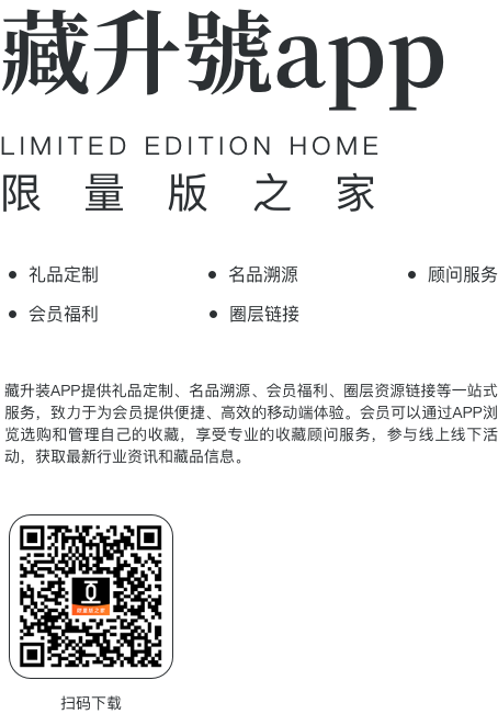 「藏升號」作为限量藏品服务平台,以“限量版之家”为品牌主张,以民族文化自信为根基、以坚定的长期主义和价值驱动战略,承载起民族品牌走向世界的使命。